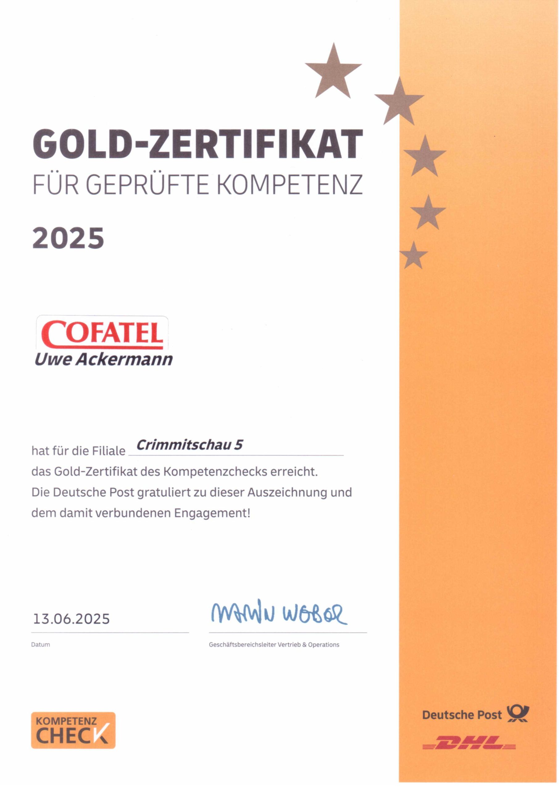 | 2020 | Kompetenz-Zertifikat in Gold erhalten |